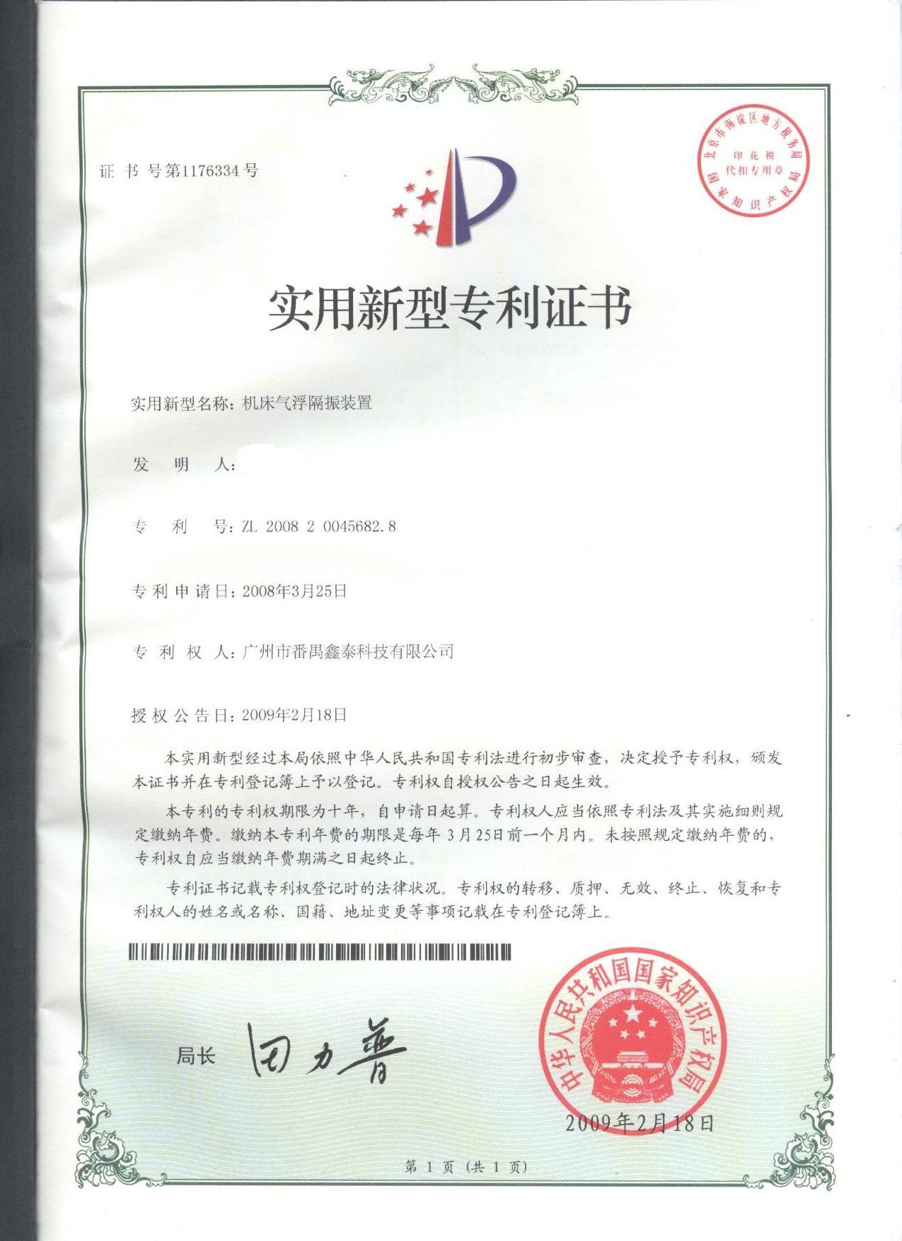 經(jīng)過公司技術(shù)部門員工的辛勤努力,鑫泰集團獲得“機床氣浮隔振裝置”的實用新型專利