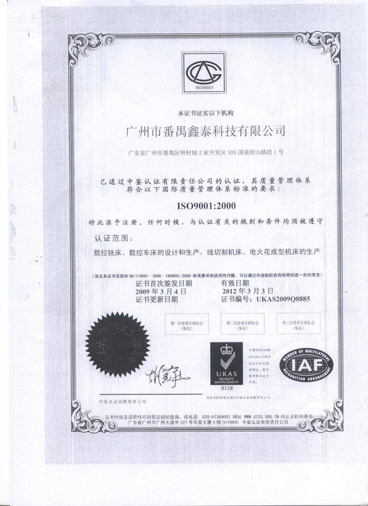 經過公司員工的辛勤努力,報國家質量體系認證,廣東鑫泰科技集團喜獲第09年ISO質量體系認證證書。